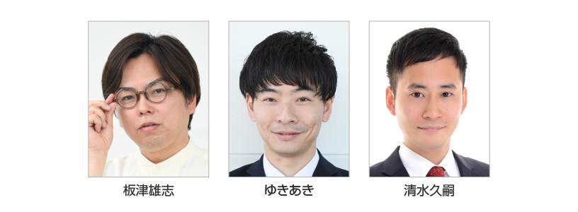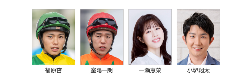板津雄志(サンケイスポーツ)、ゆきあき(競馬エイト)、清水久嗣 (アナウンサー)